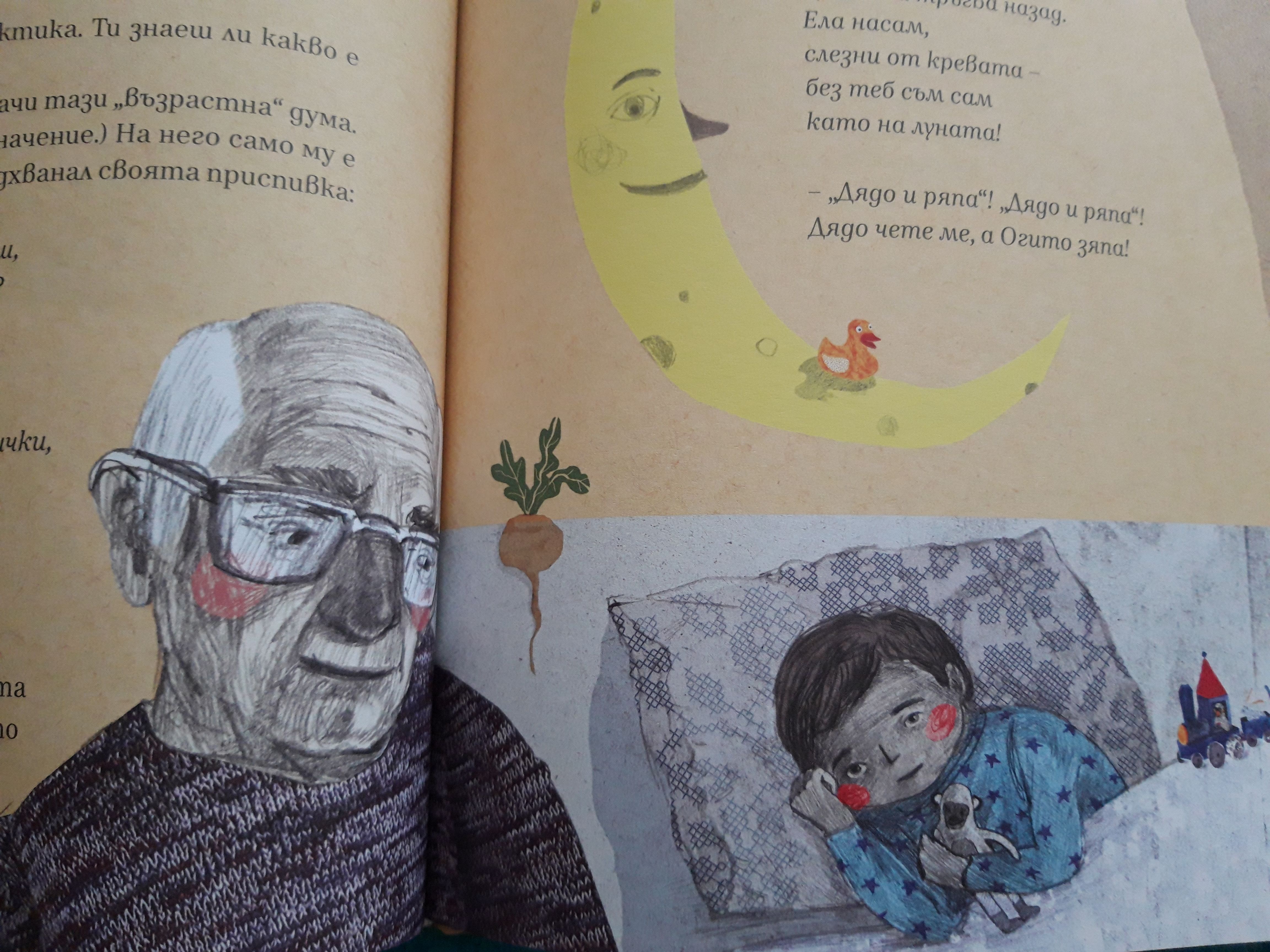 “Пук” е нарисувана от Мила Янева-Табакова, “Меко казано” – от Люба Халева, “В лунната стая” е илюстрована от Росица Ралева, а “Копче за сън” – от Мария Налбантова. В долната галерия съм сложила снимки на разтвори от всички книжки (в този ред, като последните две илюстрации са от “Копче за сън”).