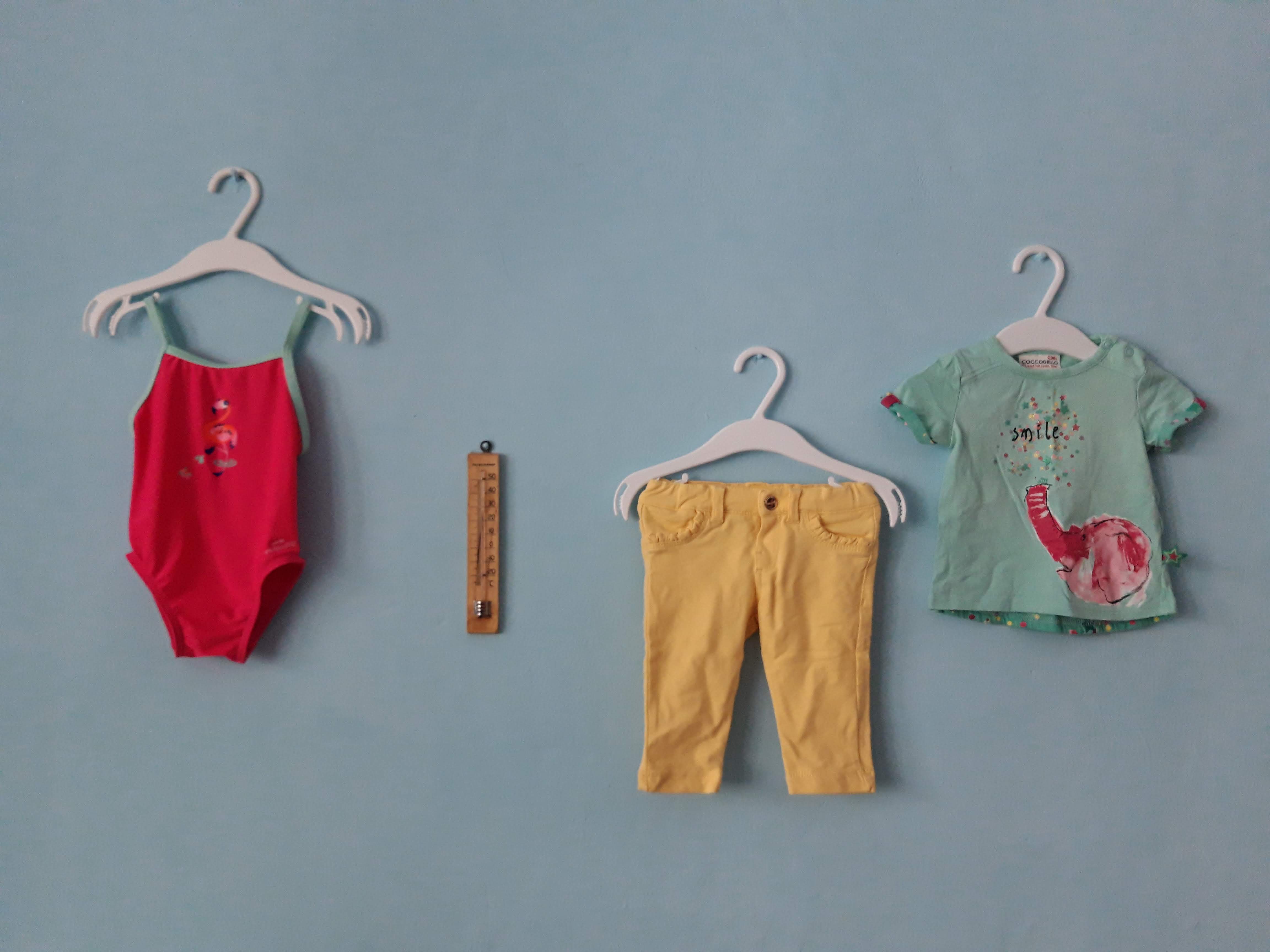 Като беше бебе, Калина получи някои много сладки подаръци, които облече максимум три пъти, но сърце не ми даде да ги предам нататък. Пазя си една торба с най-милите дрешки и ги въртя от време на време. В сегашната ѝ стая съм сложила едно миниатюрно боди от Next, което ѝ ставаше само докато стана на една седмица: